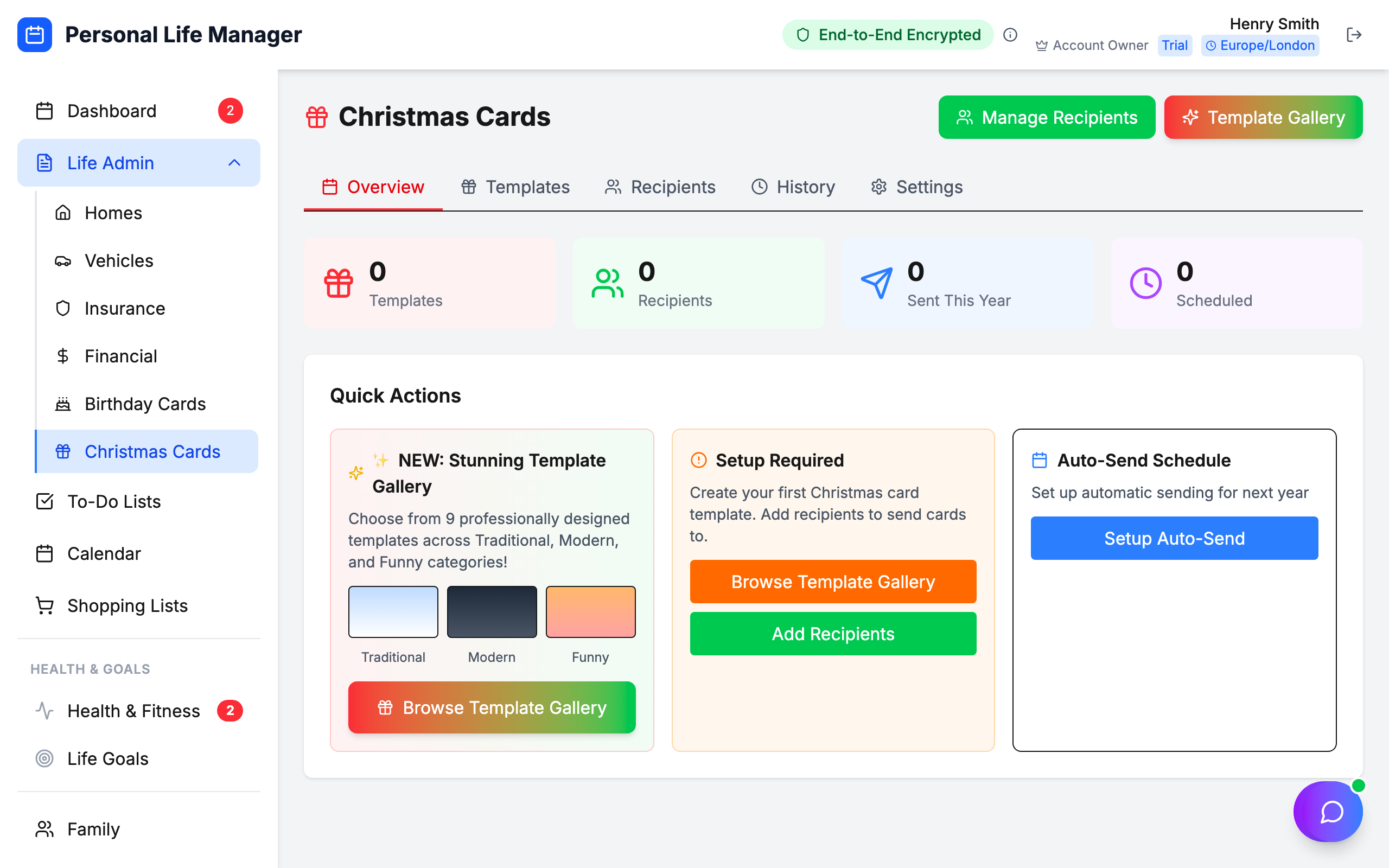 Add all your family and friends. Assign different templates to different people for personalised celebrations.